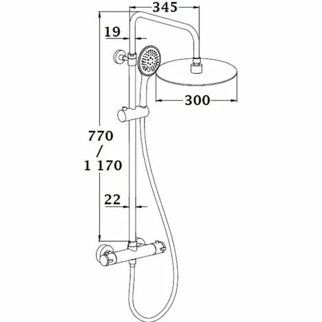 - Hauteur min : 770 mm | Hauteur max : 1170 mm | Profondeur : 345 mm