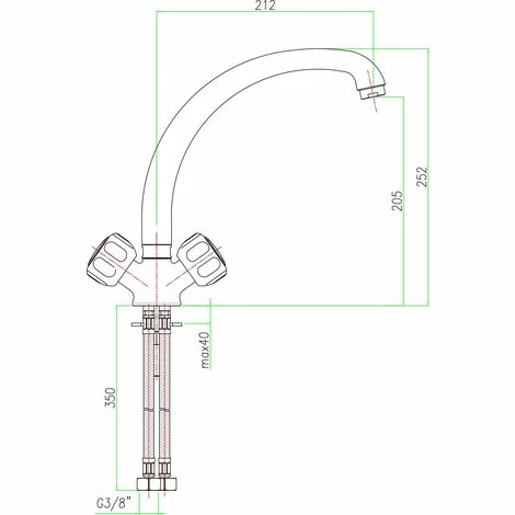 - Hauteur : 252 mm | Hauteur sous bec : 205 mm | Profondeur : 212 mm