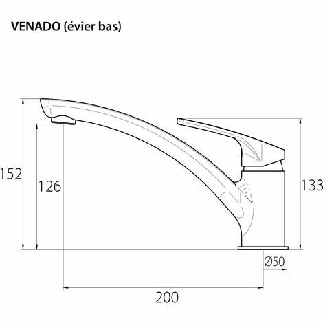 - Hauteur : 152 mm | Hauteur sous bec : 126 mm | Profondeur : 200 mm