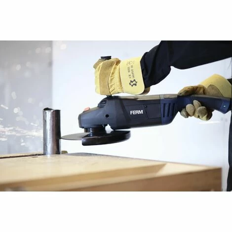 La meuleuse d’angle AGM1088 de FERM est équipée d’un moteur de 2500 Watt et de soft start. La machine est adaptée pour le broyage de l’acier, l’aluminium ou le béton et pour découper par exemple des tuyaux, cadres de fenêtres en aluminium.