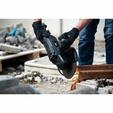 Une meuleuse d’angle est utilisée pour travailler le métal, la pierre ou les matières plastiques. En fonction du disque abrasif monté, cette machine est utilisée pour les travaux de coupe ou d’ébavurage. Par exemple: