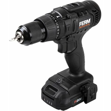Il fait partie de la gamme FERM Industrial FI20V, ce qui signifie que les batteries et le chargeur sont interchangeables avec toutes les machines de la plate-forme. Cette perceuse sans fil est livrée dans un étui de rangement robuste contenant deux batteries Li-Ion de 2,0 Ah, un chargeur rapide et deux embouts de tournevis.