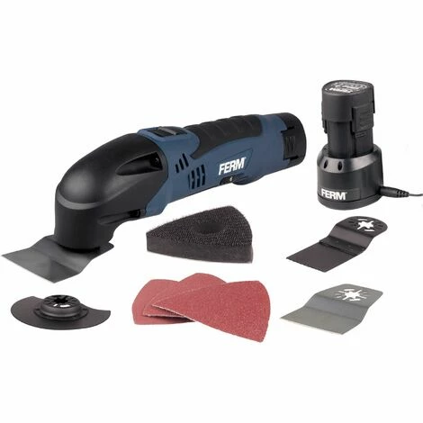 L’outil multifonction à batterie OTM1006 de FERM est adapté pour le sciage, le ponçage et le grattage. Cette outil multifonction sans fil est livré avec 4 accessoires différents : grattoir, lame E-cut, lame de scie segment et patin de ponçage dans un coffret robuste.